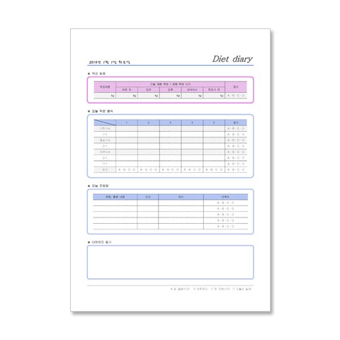 매일쓰는 간편 다이어트 일지 양식입니다.